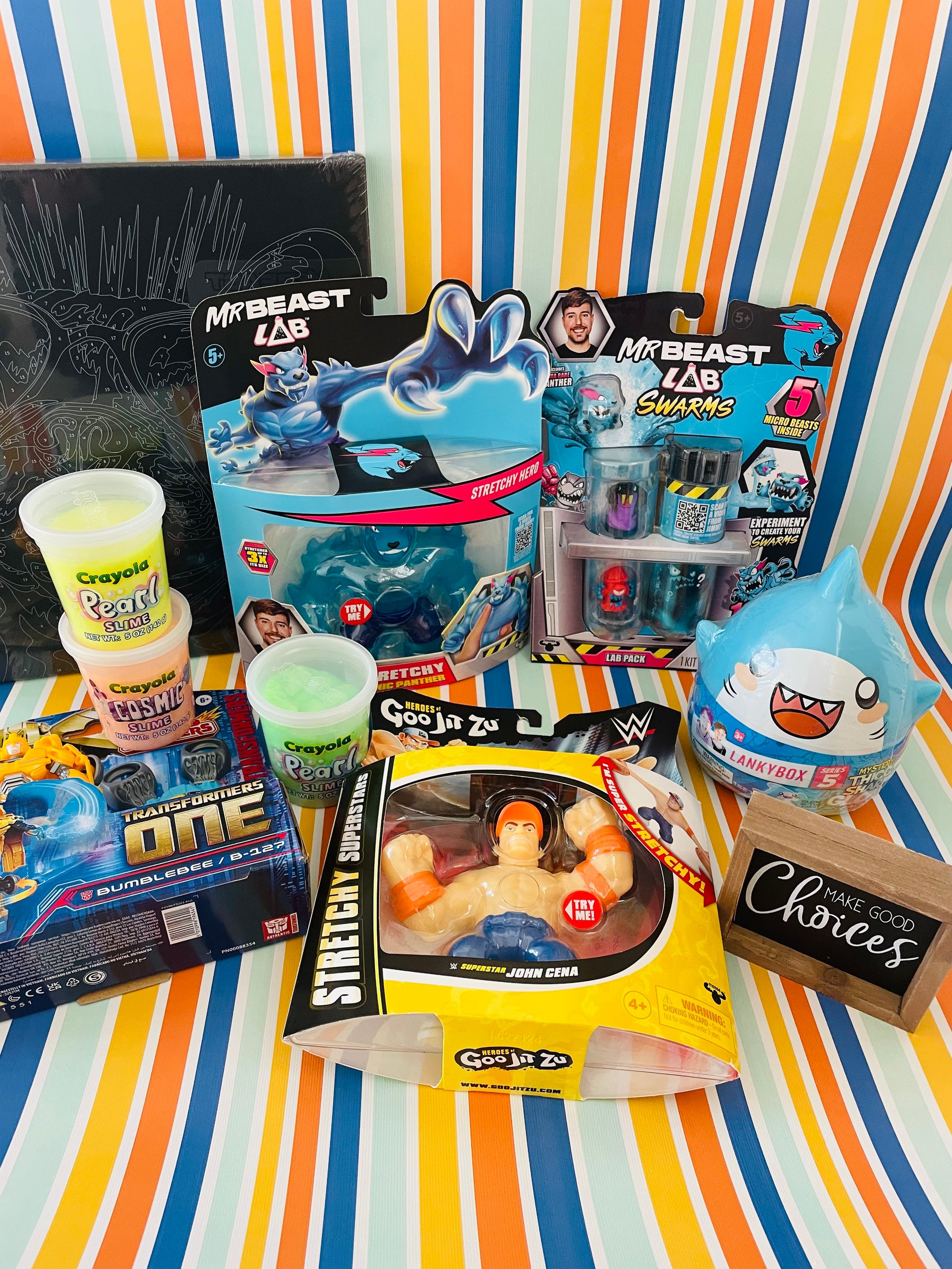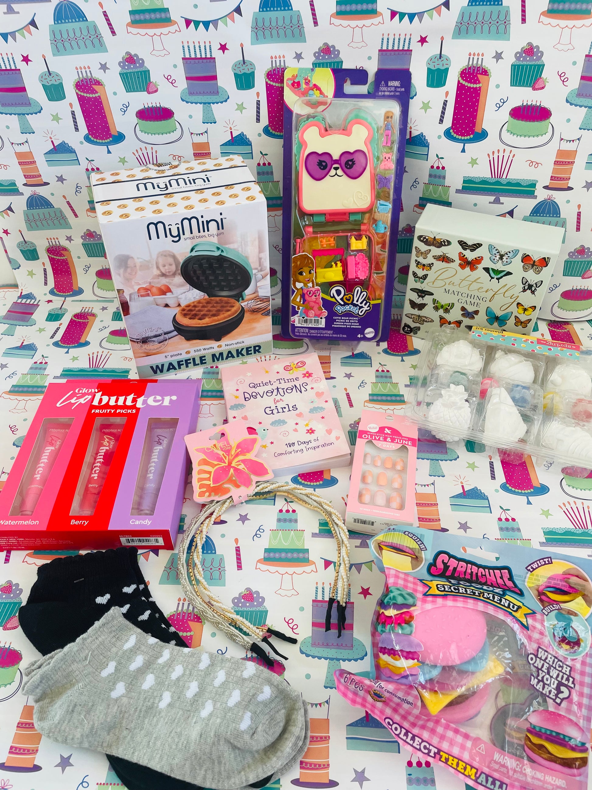 The pictures above show examples of some of the items that have been used in previous boxes. Think fun surprises: Cozy socks, slippers, journals, treats, room decor, etc. Each box is different, if you choose the fully customized option. The more specific you are in your description about the recipient the more customized gifts we choose for them.